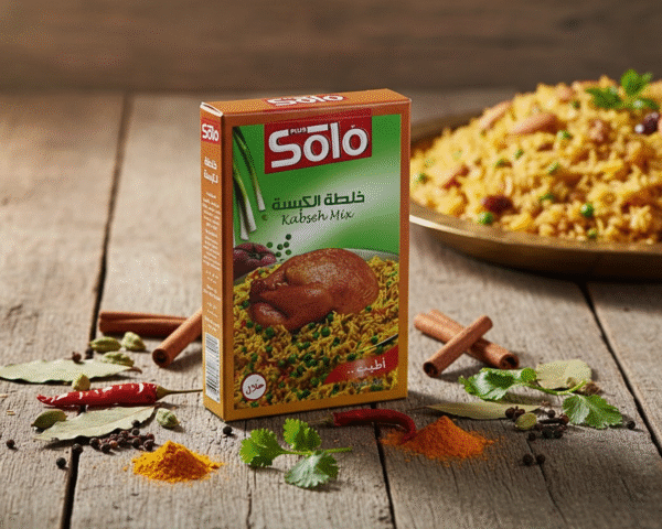 - ضعي الأرز فوق اللحم أو الدجاج على نار متوسطة ومن بعدها على نار هادئة. عندما يقارب الأرز على الاستواء قلبي الرز مع اللحم أو الدجاج وأضيفي له ملعقة كبيرة من خلطة Solo Plus